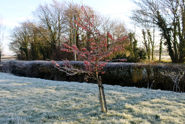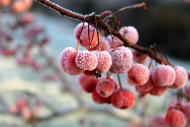 Once the apples had been frosted it took no time at all for the blackbirds to eat all the fruit on the tree!  The deer helped themselves to the apples on the lower branches.