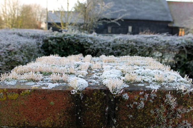 On Monday we had snow showers all day.  Stronger spells of sunshine at midday melted all that had fallen on the driveway and paths but didn’t shift the snow on the flowerbeds and grass.  Richard took Elinor to Norwich for her acupuncture appointment and found that there had been no snow there at all.  The fountain outside the hotel where Elinor has her acupuncture was spectacularly frozen.