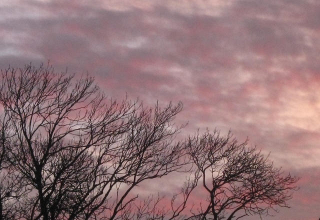 We began January with heavy rain, as I mentioned in a former post, but the high waters gradually receded despite lots more rain during the month and we are now left with a few waterlogged fields, lots of full ditches and ponds and plenty of mud.  A storm in the middle of the month left us without power for fifteen and a half hours but we suffered no damage to our house and out-buildings for which we are very thankful. We have had a little sunshine, some mild, wet and windy weather and a few colder spells too.  Very changeable weather.  This week has been cold with some snow showers.  The following photos were taken on Tuesday at sunset on our way home from Norwich.