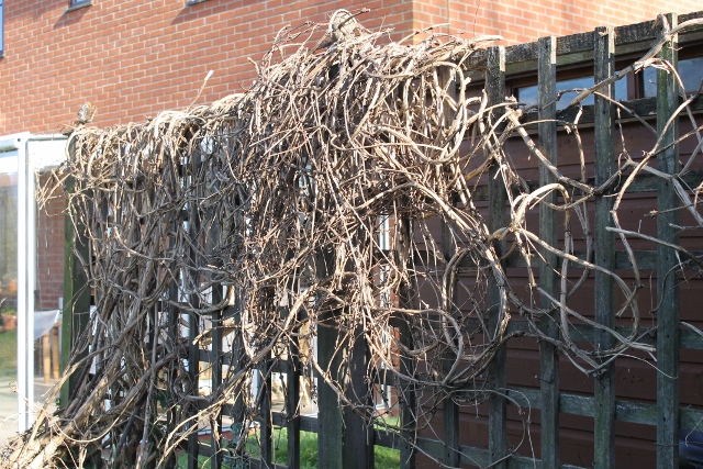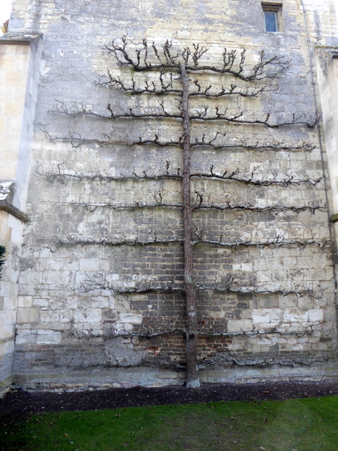 An espalier pear tree against the wall of the Abbey.