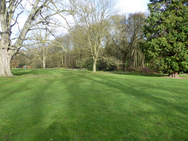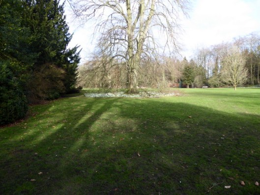 Wide lawns with under-planted trees.