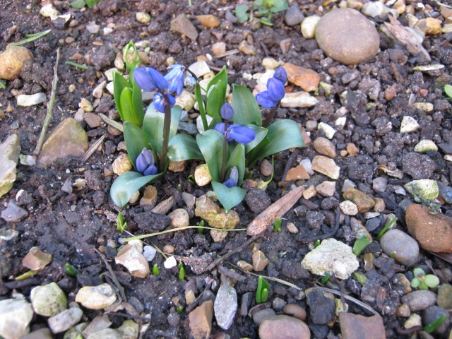 Not only do we have all these flowers but also miniature Iris, Grape Hyacinths and Hyacinths are in flower.  On my travels I have seen Daffodils, Snowdrops and Winter Aconites.  My mother’s garden has Hardy Geraniums still in flower from the autumn and also the bright red flowers of Ornamental Quince.  We have had a lot of rain (though much less than in the north and north-west of the country) – the ditches are filling fast, the roads are thick with mud and have standing water on them and parts of our garden are like a quagmire.  The grass hasn’t stopped growing but it is too wet for it to be cut.  I spent some time a few days ago pulling out Stinging Nettle runners from under our Crabapple tree.