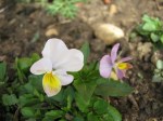 One of my flowerbeds is thickly covered with speedwell. I have never noticed it on that bed before so seeds may have been in the compost of some plants I put in last year. I spent some time today trying to remove it which was very difficult because it was growing amongst viola and heartsease seedlings. I find it interesting to observe that many weeds grow next to plants with similar leaves. The weeds are not noticed until they are quite established and starting to swamp their neighbours. These speedwell plants were so close together and had also wrapped themselves so well around the poor violas that I was finding it almost impossible to remove them. I then remembered that R uses an old kitchen fork to thin out and prick out seedlings so I fetched that from the greenhouse and found I could remove the weeds without damaging the seedlings too much. I spent the rest of the time outside tidying the edges to the paths – trimming long grass away and sweeping soil back on to the flowerbeds. Moles have pushed hills up along the side of the paths too so I stamped those down. Moles tunnel in search of worms. Worms are more plentiful where there is damp soil and soil is damper next to paths because of the water run-off. Moles like to tunnel near the ditches and ponds in the garden for the same reason. There are more worms in flowerbeds because of the mulch and compost we put there; the moles are in the flowerbeds after the worms and disturb all my plants. The large crabapple tree at the front of the house has had so much mole disturbance under it that the ground is pitted and lumpy. The moles have pushed up many of our snowdrops so I have to replant them regularly. Moles are off in search of mates at the moment so the garden is covered with hills. Oh dear!