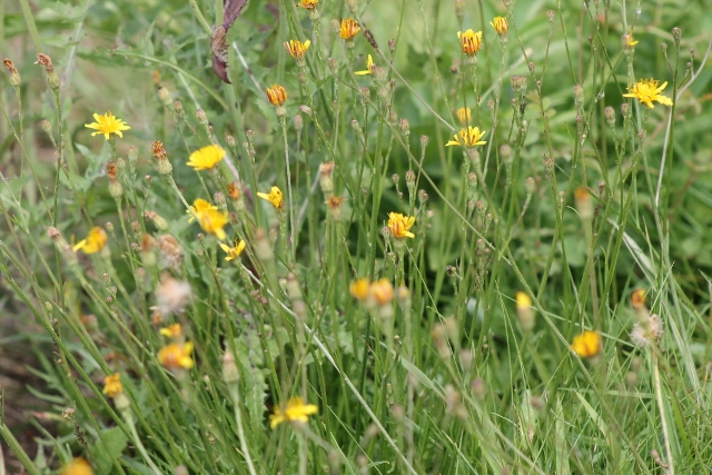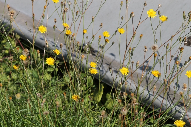 I remembered seeing a large patch of Common Fleabane (Pulicaria dysenterica) in the corner of a field last year. It was still there though a large heap of prunings had been left there earlier in the year