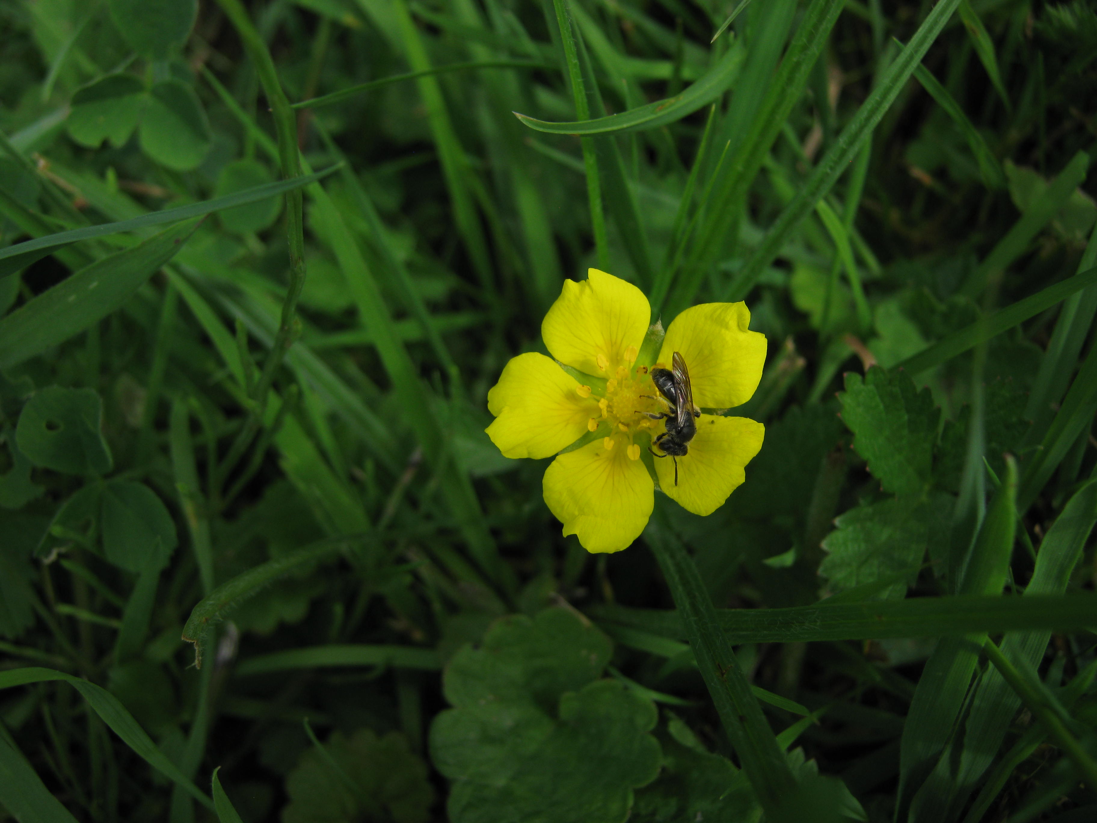 Creeping Tormentil with tiny black bee